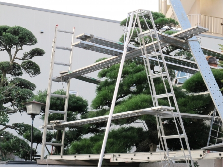 土木・建築用足場工事、建築物解体足場工事。建築現場の仮囲い設置・撤去。我々の仕事は工事期間中に全職人さんの命を預かる大切な「足場」ですから、すべての行程において熟練した職人の手によって、安全な足場を組むよう心がけています。